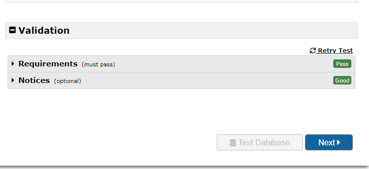 Sau khi nhập xong các bạn nhớ ấn Test Database để kiểm tra xem thông tin nhập đúng chưa, nếu hiện như này là Ok.